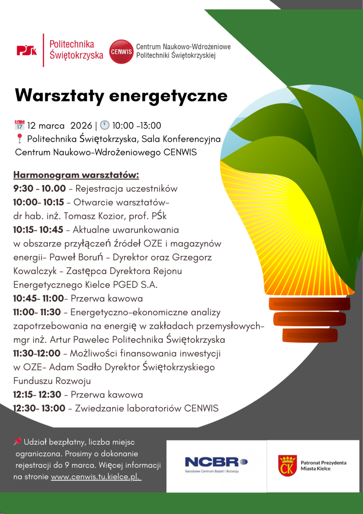 Dołącz do bezpłatnych Warsztatów Energetycznych organizowanych w Politechnice Świętokrzyskiej!