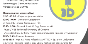 Centrum Naukowo‑Wdrożeniowe CENWIS Politechniki Świętokrzyskiej zaprasza na bezpłatne warsztaty technologiczne poświęcone drukowi 3D oraz skanowaniu 3D, które odbędą się 28 kwietnia 2026 roku w godzinach 10:00–13:00 w sali konferencyjnej Centrum …